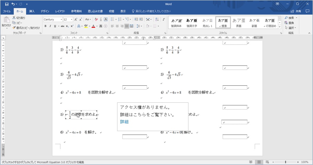 今回はワードで作成した計算式を編集しようとするとエラーが出て編集できないと言う症例です。下の写真はエラー画面が出た状況です。