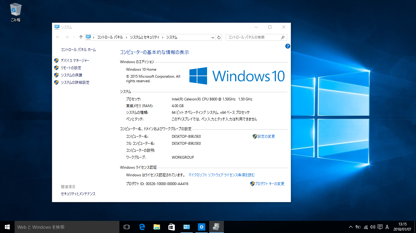 Win7が起動している状態から、Win10アップデート用プログラムを実行しました。結果は無事にラインセンス認証されています。