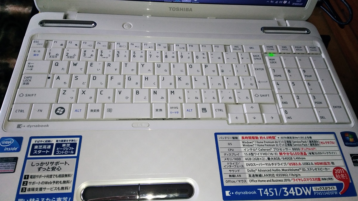 本日は2018年1月7日です。実際に過去Win10に一度もアップグレードしたことのない東芝のWin7ノートパソコンで検証しました。検証機はDynabookのT451です。